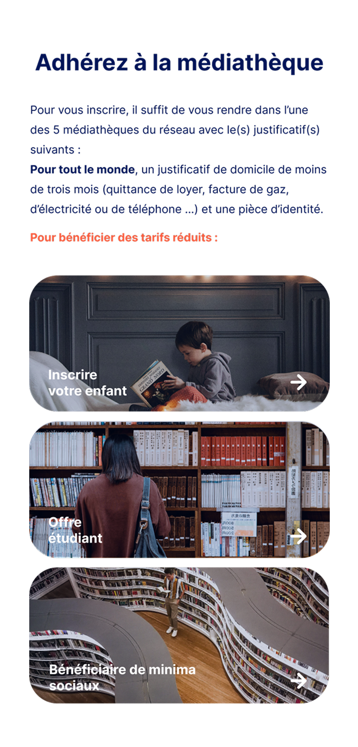 Graphically, the "Our favorites for kids" or "Teens" blocks allow quick guidance for families. It's an excellent UX (User Experience) practice for a local authority.