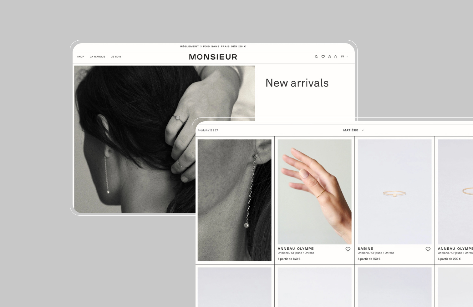 Elevating the craftsmanship of MONSIEUR jewelry through a custom Magento 2 e-commerce experience, from technical redesign to digital strategy management.