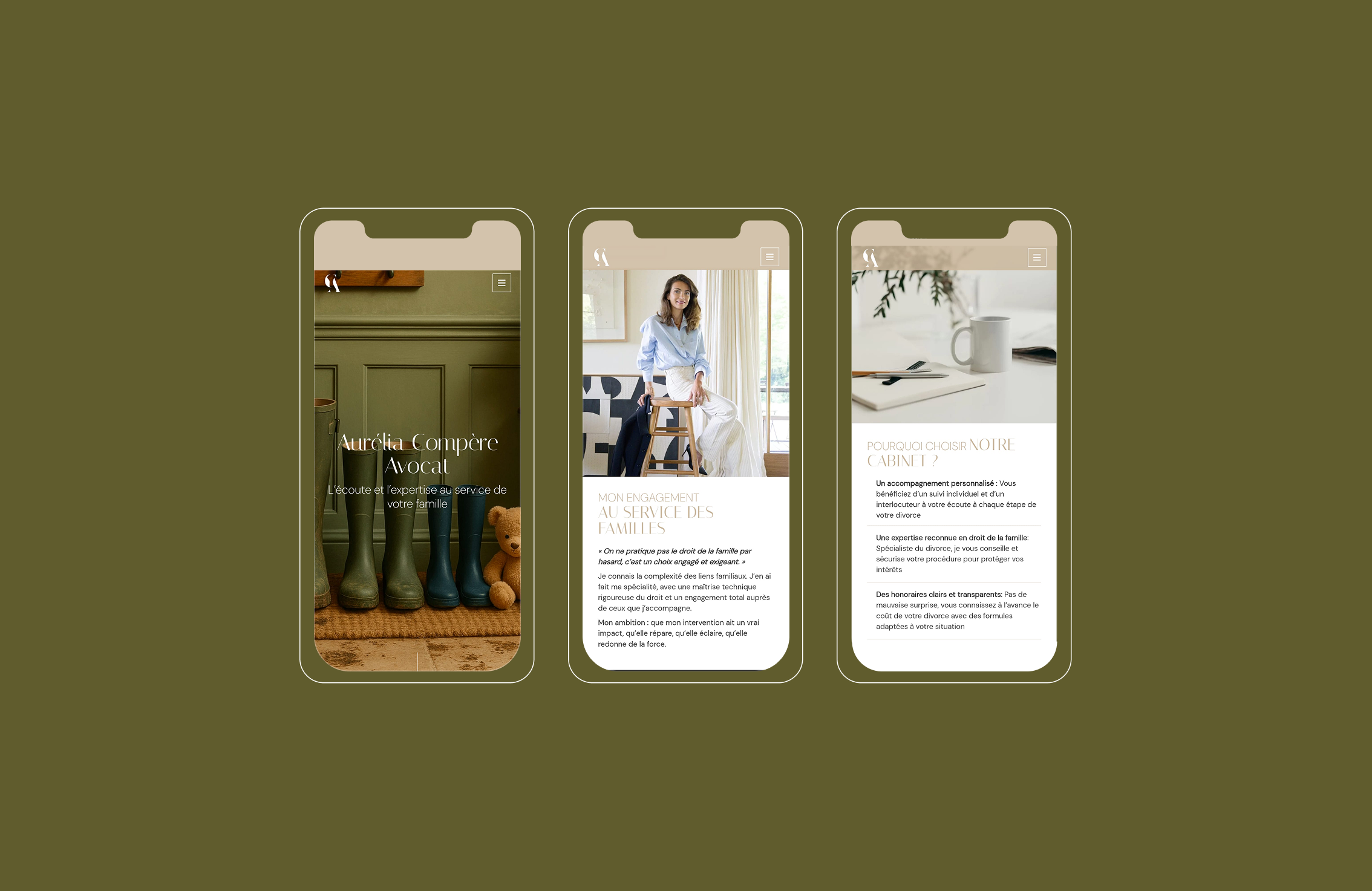 De website van Meester Aurélia Compère hervindt de codes van juridische communicatie door een warm design en intuïtieve navigatie, en transformeert expertise in familierecht in menselijke, transparante en geruststellende ondersteuning.