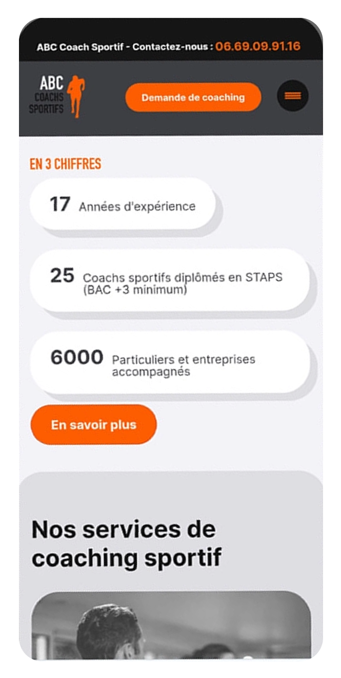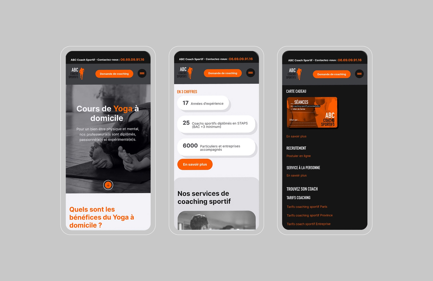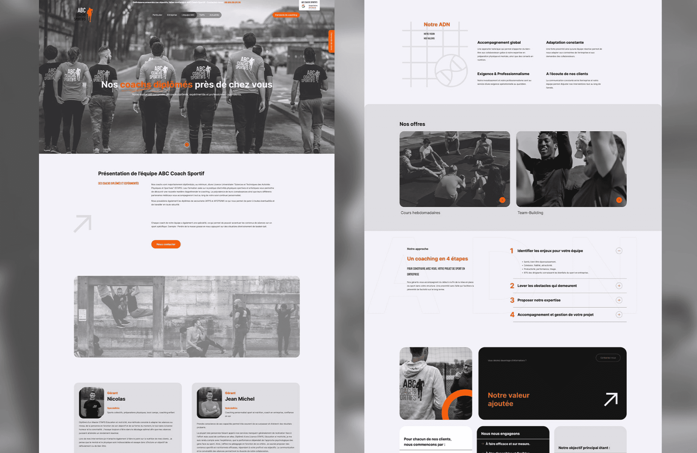 Refonte intégrale du site web d’ABC coachs sportifs réalisée pour s’aligner parfaitement avec l’identité de marque et mieux refléter les valeurs et la vision de l’entreprise.