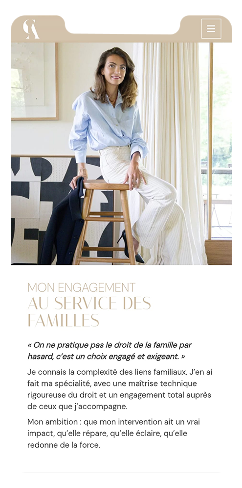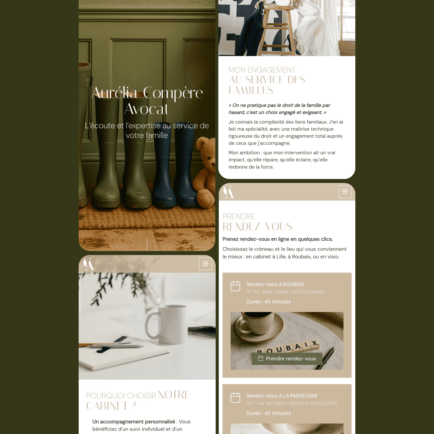 Notre mission a été de repenser entièrement le site d'Aurélia Compère, avocate en droit de la famille et du divorce. L'objectif était de créer une plateforme unique qui augmente sa visibilité et son nombre de clients, tout en reflétant sa transparence et sa proximité.